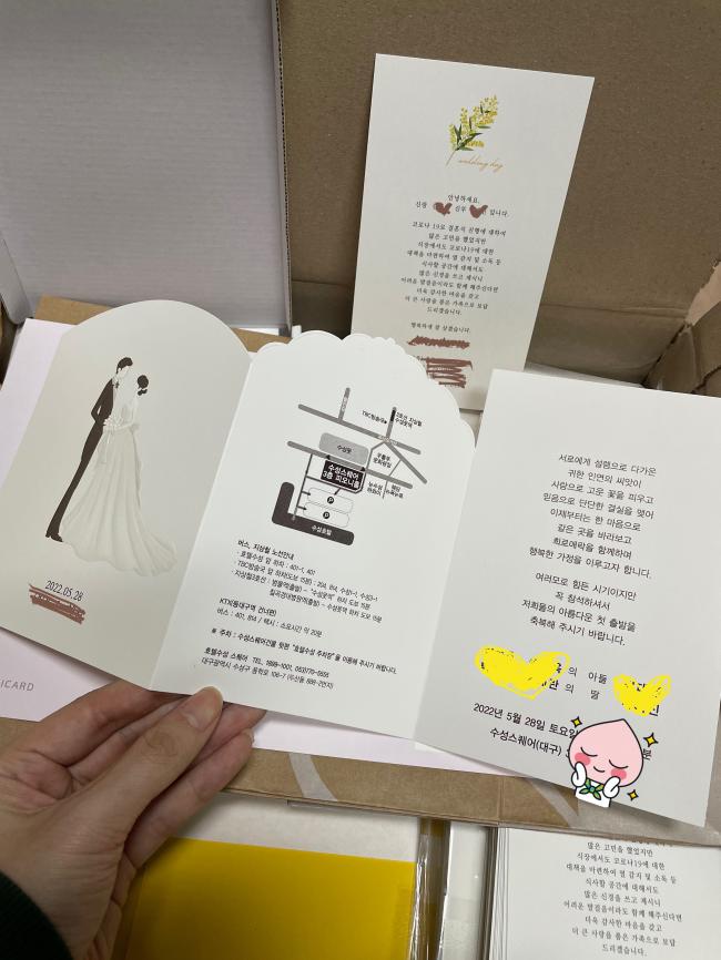 ³Ê¹« ´ë¸¸Á·À̶ó Èı⸦ ¾È³²±æ¼ö°¡ ¾ø³×¿ä..^^ 3°³¿ù µÚ °áÈ¥ÇÏ°Ô µÉ ¿¹ºñ½ÅºÎÀÔ´Ï´Ù. ûÁ¢ÀåÀ» ÁغñÇÏ¸é¼ Ãß°¡¼öÁ¤ÀÇ °æ¿ì ³Ê¹« Ä£ÀýÇÏ°Ô Àß ÇØÁֽðí, ¹ø°Å·Î¿ì¼Ì°ÚÁö¸¸, ±Û¾¾Ã¼ºÎÅÍÇØ¼ ¹®´Ü³ª´©±â µîµî ¸¹Àº ¿äûÀÌ ÀÖ¾úÁö¸¸, ¸î¹øÀÌ°í ¼öÁ¤ÀÌ °¡´ÉÇÏ´Ù´Â Á¡ÀÌ ³Ê¹« ÁÁ´õ¶ó±¸¿ä! ±×¸®°í ¿©ºÐ ¸îÀåµµ °°ÀÌ º¸³»Áּż, Ȥ½Ã³ª Á¢´Ù°¡ ½Ç¼öÇÒ¼öÀÖÀ»±î¹Ù ÁֽŰÅÁÒ? ¼¾½º¿¡ ÇÑ ¹ø ´õ °·µ¿¾²~ ¸ð¸£´Â ºÎºÐÀº ¹®ÀÇÇßÀ» ¶§ Àüȷεµ Ä£ÀýÈ÷ À߾˷ÁÁּż ´öºÐ¿¡ ¿¹»Û ûÁ¢ÀåÀ» ¹Þ¾Æº¼ ¼ö ÀÖ¾î¼ ³Ê¹« ÁÁ¾Æ¿ä! ÁÖº¯ ÁöÀε鿡°Ôµµ ¸¹ÀÌ ÃßÃµÇØÁà¾ß °Ú¾î¿ä!