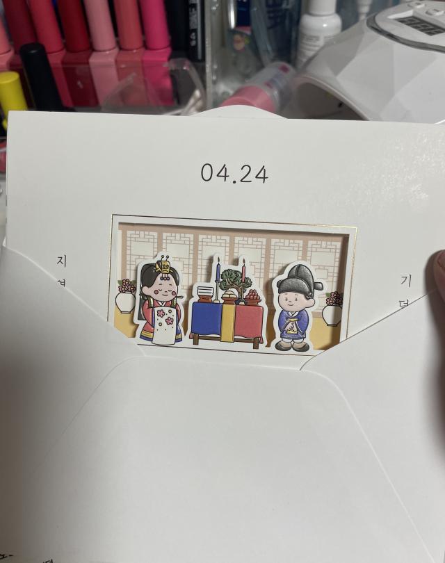 4¿ù ¿¹½ÄÀÌ¶ó º¢²É µðÀÚÀÎÀ¸·Î °áÁ¤Çß¾î¿ä~! º¸ÀÚ±âÄ«µå´Â ´Ù¸¥ »çÀÌÆ®º¸´Ù ´Ù¾çÇÑ Á¾·ùÀÇ ¿¹»Û µðÀÚÀÎÀÌ ¸¹¾Æ¼ ´õ °í¸£±â ¾î·Á¿üÁö¸¸(?!) ¼±Åñǰú ¸¸Á·µµ´Â ±×¸¸Å ´õ Ä¿¼ ³Ê¹« ÁÁ¾Ò³×¿ë^.^ ÃÖÁ¾ µðÀÚÀÎ ¹Þ¾Æº¸°í ³Ê¹« ¸¾¿¡ µé¾ú½À´Ï´Ù~!! ÇÔ²² µ¿ºÀÇØÁֽŠ»þ½¦µµ ÇâÀÌ ³Ê¹« ÁÁ°í ¾×ÀÚ ¶ÇÇÑ ÇÒÀÎ¹Þ°í »ì ¼ö ÀÖ¾î¼ ³Ê¹« ÁÁ¾Ò¾î¿ä! ÀÚÀÛ³ª¹« ¿ìµå ¾×ÀÚ°¡ Âü ´Ü¾Æ¾Æ´Ï ¸¾¿¡ µì´Ï´ç~!