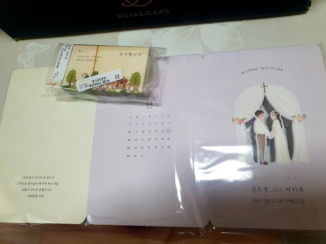 ûøÀå ³Ê¹« ¿¹»Ú°í °í±Þ½º·¯¿ö¼ ÁÖ¹®Çß°í, ¸Å¿ì ¸¸Á·ÇÏ¿© Èı⠳²±é´Ï´Ù.¸Ç ¾ÕÀå¿£ ÀúÈñ »çÁøÀ» ³ÖÀ» ¼ö Àִµ¥, ½ÇÁ¦ ¾ó±¼ÀÌ ³ª¿À¸é ¹Þ´Â »ç¶÷µéÀÌ ³ªÁß¿¡ ûøÀå ó¸®ÇÒ ¶§ °ï¶õÇØÇÏ½Ç ºÎºÐÀ» °í·ÁÇÏ¿©, ÀúÈñ °°À¸¸é¼µµ ÀÏ·¯½ºÆ®±×¸² °°Àº ´À³¦À¸·Î ³Ö¾ú´õ´Ï, ¿ª½Ã³ª »ç¶÷µéÀÌ ÀúÈñ ¸Â³Ä°í ¹°¾îº¸¸é¼ ±×¸² °°´Ù°í ÇϽôõ¶ó°í¿ä. ±×¸®°í Á¦°¡ °¡Àå ¸¹ÀÌ µé¾ú´ø ¸»Áß¿¡ Çϳª°¡, ¹Þ´Â ºÐµé²²¼ ûøÀå ¹ÞÀº °Í Áß¿¡ Á¦°¡ µå¸° ûøÀåÀÌ °¡Àå À¯´ÏÅ©ÇÏ°í ¿¹»¼´Ù°í ¸»¾¸ÇØÁּ̾î¿ä.µðÀÚÀÎÀº ±âÁ¸ Æû¿¡¼ ±Û¾¾Ã¼, »ö»ó, ¹®±¸ µîÀ» ¼öÁ¤ÇÒ ¼ö ÀÖ¾î¼ Àú´Â ÇÑ±Û À̸§ ´ë½Å ¿µ¾î¸¦ ³Ö¾ú°í, ±Û¾¾ »öµµ Á¦°¡ ¿øÇÏ´Â »ö»óÀ» ¹øÈ£·Î ¾Ë·Áµå·Á¼ ¼öÁ¤Çß¾î¿ä. ±×¸®°í ùÀå ³Ñ°Üº¸¸é ¹®±¸°¡ Çϳª µé¾î°¡´Âµ¥, ÀÌ°Ç ±âÁ¸ ¹®±¸°¡ ÀÖÁö¸¸, Àú´Â ¿¹¶ûÀ̰¡ Àú¿¡°Ô ûȥÇÒ ¶§ ÀοëÇß´ø ¹®±¸·Î ¼öÁ¤Çß¾î¿ä.º¸ÀÚ±âÄ«µå¿¡¼ ÁÖ¹®ÇÑ ÀÌ µðÀÚÀÎÀº ¸ð¹ÙÀÏ Ã»Ã¸Àåµµ µ¿ÀÏÇÑ µðÀÚÀÎÀÌ ÀÖ¾î¼, ¶È°°ÀÌ ¸¸µé ¼ö ÀÖ´Â Á¡ÀÌ °¡Àå ÁÁ¾Ò¾î¿ä. ¸ð¹ÙÀÏ Ã»Ã¸Àå ù ÆäÀÌÁö »çÁøÀº ¸Ç ¾Æ·¡ µÎ¾úÀ¸´Ï Âü°íÇØÁÖ¼¼¿ä.